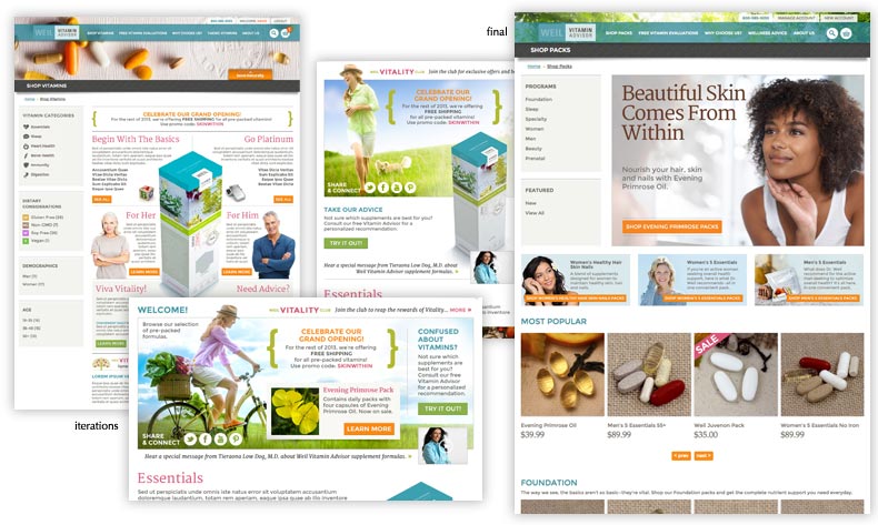 The newly redesigned Weil Vitamin Advisor site presented multiple opportunities. One being, “What will the Shop Packs/storefront page look like?”